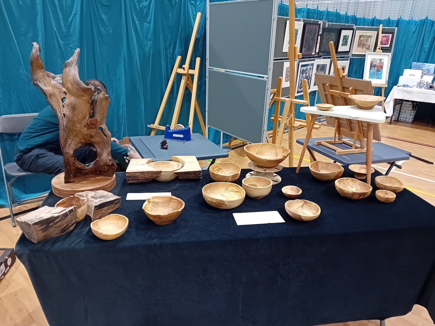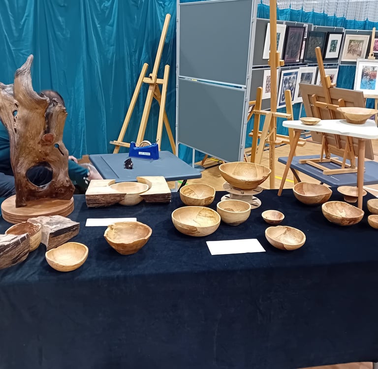 Had a great time at the BS9 Arts Trail this year. We exhibited in Badminton School sports hall which gave us loads of space to display some furniture as well as sculptures and bowls. Met lots of other very talented exhibitors too.